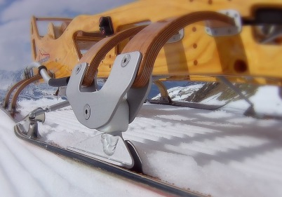 Da der Schlitten auf Skiern mit scharfen Kanten fährt, ist er auch auf verharschten oder vereisten Pistenabschnitten sicher lenkbar.